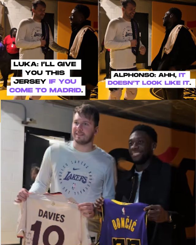 돈치치의 농담을 들은 데이비스는 “그럴 것 같지 않다”라고 웃어 보였다. 이후 두 선수는 유니폼을 주고받고, 기념 촬영을 했다.