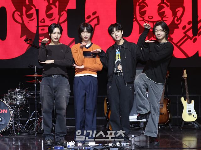 그룹 드래곤포니가 19일 오후 서울 서대문구 예스24 원더로크홀에서 열린 새 EP 'Not Out' 발매 기념 쇼케이스에서 포토타임을 갖고 있다. 앨범과 동명의 타이틀곡 'Not Out'은 꿈을 향해 끊임없이 도전하는 현대 청춘들의 모습을 야구 용어에 빗대어 표현한 곡. 서병수 기자 qudtn@edaily.co.kr /2025.03.19/
