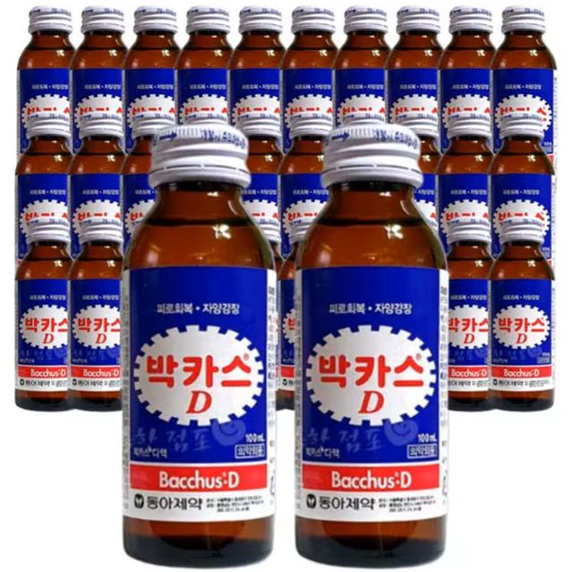 박카스는 동아제약에서 생산하는 자양강장 드링크다. 카페인, 타우린, 비타민 B군을 주성분으로 한 에너지 음료인 박카스는 피로회복과 각성 효과를 내세운다. 이름은 로마 신화의 술의 신 바커스(Bacchus)에서 따왔는데, 강신호 창립자가 직접 작명했다. 100ml와 120ml 병에 담긴 갈색 액체는 파인애플 주스와 비슷한 단맛과 은은한 쓴맛이 특징이다. 현재는 의약외품으로 분류돼 약국과 편의점에서 쉽게 살 수 있지만, 과거엔 일반의약품으로 약국에서만 판매됐다. 박카스는 단순한 음료를 넘어 한국인의 일상과 문화 속에 깊이 뿌리내렸고, ‘야근 필수품’이나 ‘수험생의 친구’로 불리며 독보적인 위치를 지켰다.