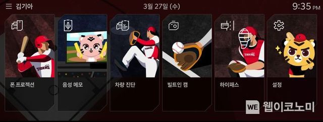 ‘KBO 디스플레이 테마’는 차량 내 대화면 ccNC(connected car Navigation Cockpit) 디스플레이의 색상 및 그래픽을 자신이 응원하는 구단에 맞게 커스터마이징할 수 있는 맞춤형 디지털 상품으로, ▲ KBO 리그 소속 10개 구단의 팀 로고, 키컬러가 반영된 클러스터 ▲ 팀 마스코트와 유니폼을 착용한 선수 일러스트로 구성된 인포테인먼트 홈카드 및 프로필 ▲ 팀 마스코트가 내 차의 위치를 표시하는 내비게이션 등으로 구성된다.