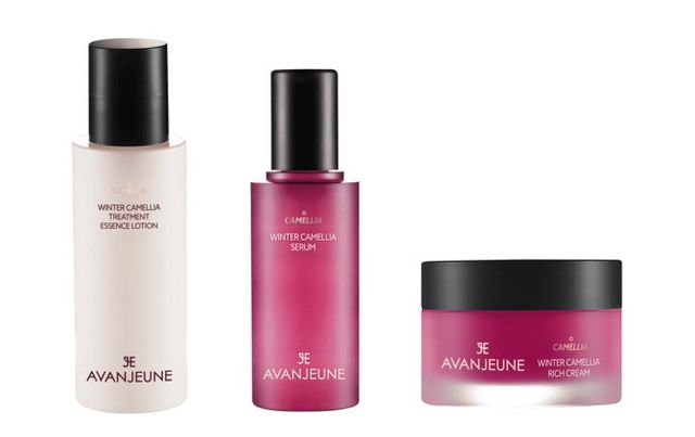 아방쥔 윈터 까멜리아 트리트먼트 에센스 로션, 아방쥔 윈터 까멜리아 세럼, 아방쥔 윈터 까멜리아 리치 크림. © 와이레스