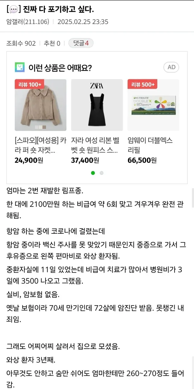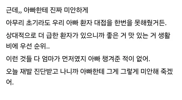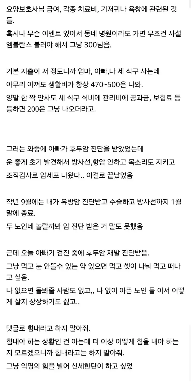 암에 걸린 가족 간병하는 사람의 넋두리.,,