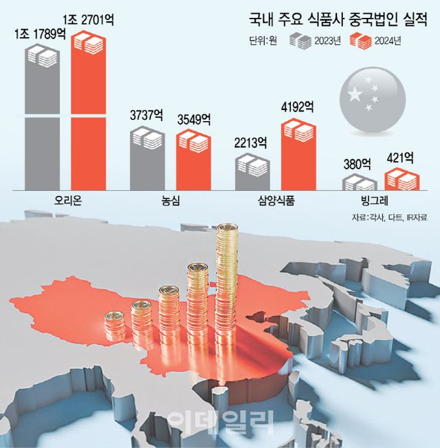 빙그레(005180)는 지난해 중국법인 매출이 421억원으로 전년보다 10.6% 증가했다. 반면 당기순이익은 1억 6000만원으로 전년비 92.4% 감소했다. 빙그레 관계자는 “물류비 증가 등으로 원가 부담이 늘어났고 현지 매출 증대를 위한 영업 및 마케팅 비용 증가로 이익이 감소됐다”면서 “올해는 늘어난 매출을 바탕으로 지속 성장의 기틀을 마련하고 현지 수익성 제고 전략을 통해 내실을 다지는 전략을 펼칠 예정”이라고 했다.