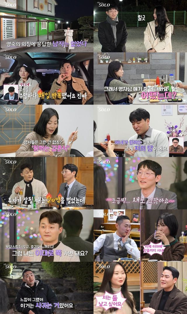 지난 19일 방송한 SBS Plus와 ENA의 리얼 데이팅 프로그램 ‘나는 SOLO’에서는 핑크빛 쌍방향과 회색빛 일방통행으로 갈린 ‘솔로나라 25번지’ 첫 데이트 선택 결과가 공개됐다. 첫 데이트 선택에서는 미경이 ‘직진남’ 영식-‘미스터리남’ 광수의 선택을 받아 ‘인기녀’가 된 반면, 영숙이 유일하게 ‘0표녀’가 돼 희비를 교차시켰다.