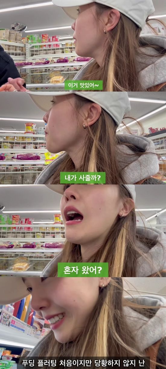 그때 푸딩을 고르던 방민아 뒤로 한 일본 남성이 한국어로 "맛있다"며 말을 걸어왔다. 그는 "이 푸딩이 1등이다. 최고"라면서 직접 푸딩을 추천해주기도 해 눈길을 끌었다.