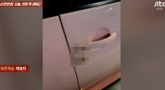 피해 차주는 조수석 손잡이 부근에 이상한 액체가 묻은 것을 발견하고 사진을 찍어뒀다가 이튿날 경찰에 신고했다.