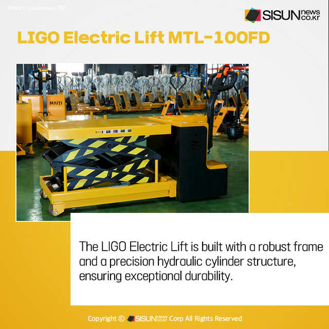 The LIGO Electric Lift is built with a robust frame and a precision hydraulic cylinder structure, ensuring exceptional durability.