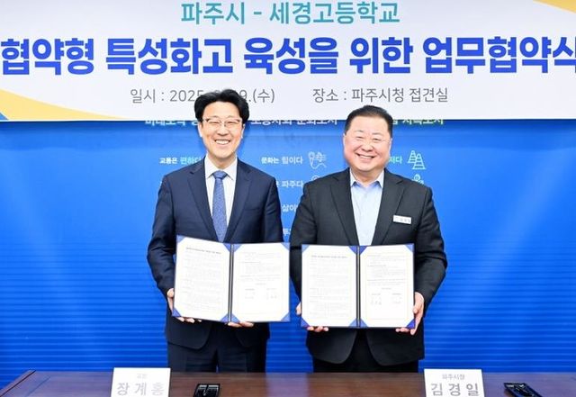 이번 협약은 파주시 교육발전특구 사업과 세경고등학교 협약형 특성화고 선정의 성공적인 추진을 위한 상호 협력 증진을 목적으로 추진됐다.