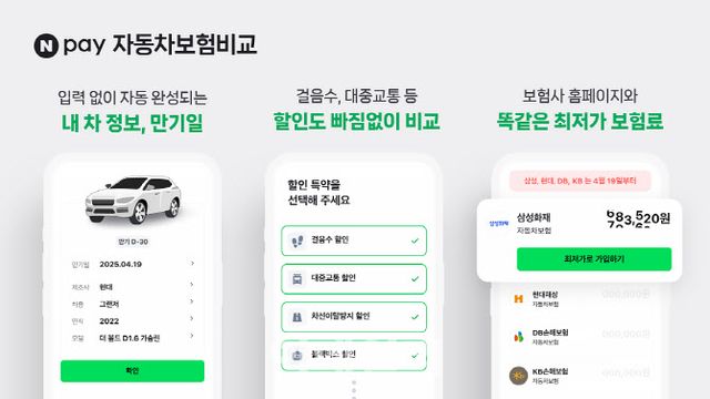 또한, 보험계약 만기일이 4월 19일인 사용자부터는 ‘네이버페이 자동차보험비교’와 각 보험사 홈페이지 모두 동일한 보험료로 계산돼, 동일 조건 내에서 10개 보험사 중 최저 보험료를 보다 정확하게 확인할 수 있다.