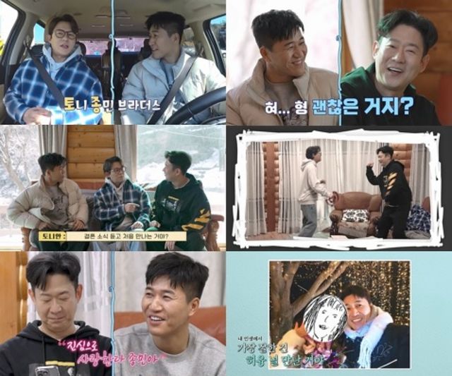 모처럼 토니안과 만난 김종민은 차를 타고 경기도 양평으로 향했다. 양평에 사는 천명훈을 만나 ‘청모’를 하기로 한 것인데, 차 안에서 김종민은 “혹시 형님은 여자친구가 있느냐?”고 슬쩍 물었다. 토니안은 “여자친구는 없는데 이제 결혼을 생각하는 시기는 온 거 같다”고 답했다. 그는 “배윤정과 아카데미를 하고 있는데, 학원에 다니는 아이들을 보면 너무 귀여운 거다. 그래서 결혼을 생각하게 됐다”고 밝혔다. 그러면서 “너까지 간다고 하니 더욱 압박이 된다. 나도 50세 전에는 가야 할 것 같다”고 부담감을 털어놨다. 잠시 후 두 사람은 천명훈의 집에 도착했다. 천명훈은 김종민을 보자 “소식 들었다. 눈물이 날 것 같다”며 축하 인사를 건넸다. 김종민은 “형들에게 좋은 기운을 주고 싶다”고 화답한 뒤 청첩장을 전했다. 토니안은 “원래 절대 축가를 안 부르는데, 미리 축가를 해주겠다”며 마이크를 잡았고, 다음으로 천명훈이 “사실 종민이 결혼 소식을 듣고 편지를 준비했다”며 축사를 낭독했다. 그는 “막상 올 게 왔다고 하니까 잘 믿기지 않았다. 네가 자랑스러우면서도 부러웠다. 미래의 와이프와 함께 잘 살 거라고 믿는다”고 하면서 눈시울을 붉혔다.