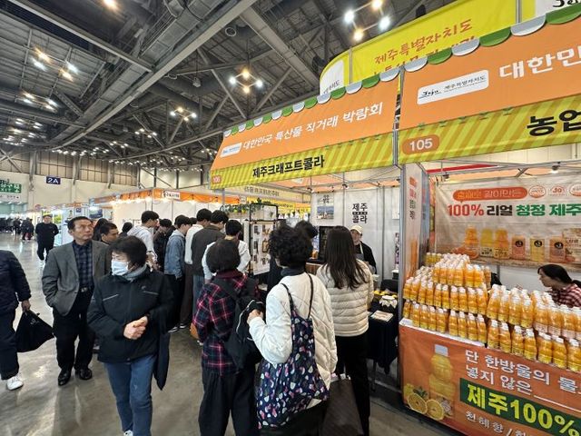 [한라일보] 제주도를 비롯해 전국의 우수한 특산물을 한자리에서 만나볼 수 있는 '제11회 대한민국 대표 특산물 직거래 박람회'가 20일 부산 벡스코 제1전시장 2A홀에서 개막했다. 전국 각지에서 생산된 신선한 농축수산물과 특색 있는 가공 식품이 소비자들과 직접 소통하는 자리다.