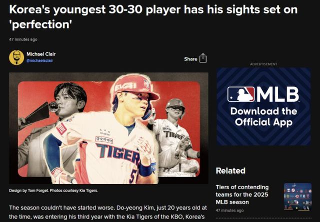 메이저리그(MLB) 공식 홈페이지 MLB닷컴이 KBO리그 최우수선수(MVP) 김도영(22·KIA 타이거즈)을 주목했다.