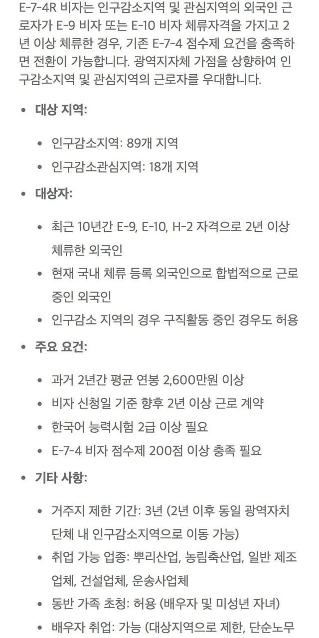 이미 일하고 있던 짱깨의 체류 기간 연장+그 짱깨의 배우자 및 자식까지 입국 허용+배우자도 단순노무 가능