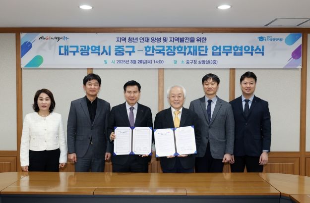 [파이낸셜경제=김예빈 기자] 대구 중구는 20일 구청 상황실에서 한국장학재단과 지역 청년 인재 양성 및 지역 사회 발전을 위한 업무협약(MOU)을 체결했다.