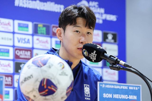 대한민국 축구대표팀 손흥민이 지난 19일 오후 경기 고양시 고양종합운동장에서 오만전 관련 기자회견을 하고 있다. 홍명보 감독이 이끄는 축구대표팀은 오는 20일 고양종합운동장에서 오만과 2026 FIFA 북중미 월드컵 아시아 지역 3차 예선 B조 조별리그 7차전을 치른다 / 뉴스1