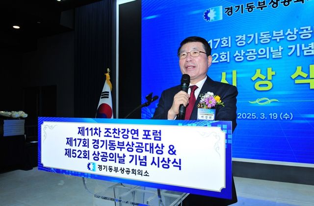 [파이낸셜경제=김예빈 기자] 백경현 구리시장이 19일 경기동부상공회의소가 주최하는 ‘2025년 제52회 상공의 날’ 행사에 참석하여 구리시의 경제성장을 주도하는 기업인들의 노고를 격려하고 지역경제 활성화를 위해 힘을 모아줄 것을 당부했다.