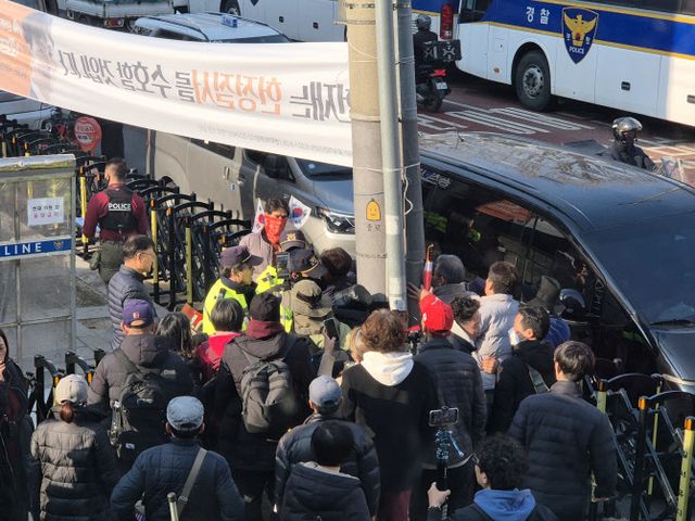 경찰은 경력을 투입해 헌재 정문 앞에서 농성을 하고 있는 이들을 안국역 인근으로 이격 조치하고 있다. 경찰이 해산 조치를 시작하자 일부 시위대는 흥분한 모습으로 경찰에 달려들었다. 유튜버들과 집회 참석자들, 경찰이 엉켜 한동안 혼란이 이어지기도 했다.