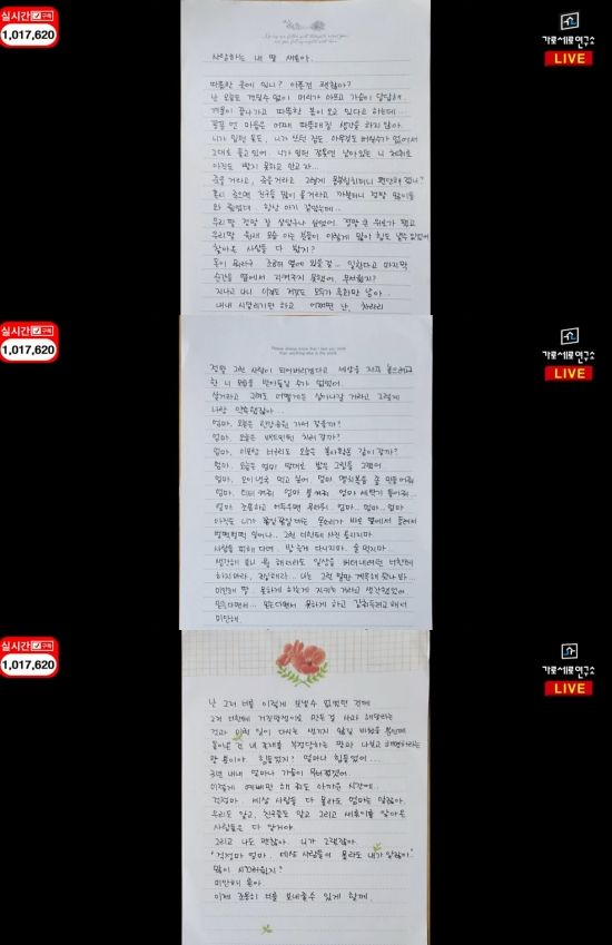 김새론의 어머니는 20일 유튜브 '가로세로연구소'를 통해 딸에게 전하는 편지를 공개했다.