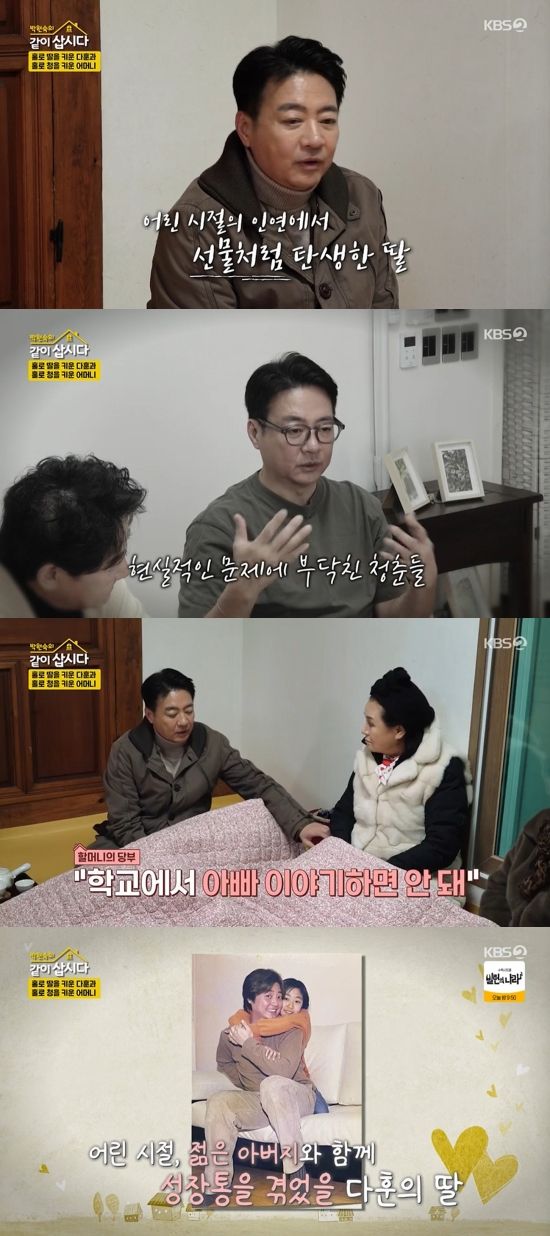 이날 윤다훈은 미혼부로 키운 큰 딸에 대해 "군대에 있다가 잠시 휴가 나와서 만난 인연이 딸을 선물로 주고 떠났다"고 밝혔다.