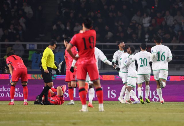 달아나지 못한 한국이 대가를 치렀다. 후반 35분 중원 혼전 상황에서 수비하던 이강인이 발목을 접질리며 쓰러졌다. 경기는 계속 진행됐다. 어수선한 상황에서 알리 알부사이디의 왼발에 동점 골을 내줬다. 이강인은 부상으로 경기장을 빠져나왔다.