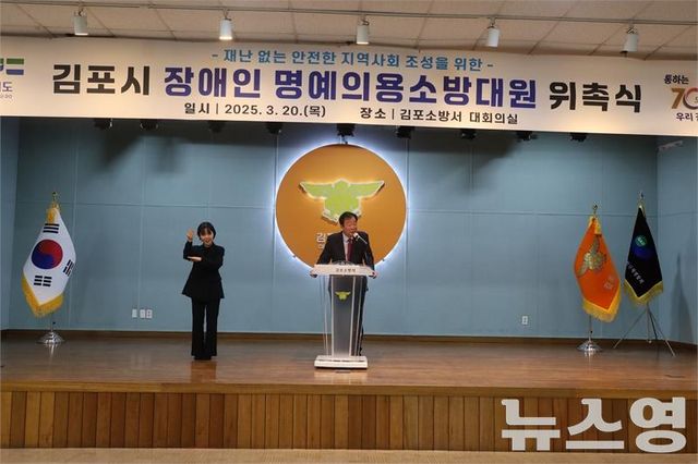 (뉴스영 김동윤 기자) 경기도의회 안전행정위원회 임상오 위원장(국힘, 동두천2)은 20일 김포시 장애인 명예의용소방대 위촉식에 참석해 대원들에게 축하 인사를 전했다.