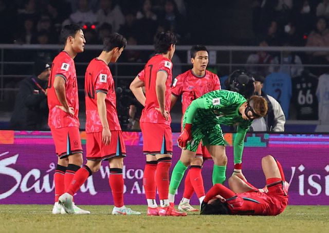 대한민국 축구 대표팀은 20일 경기도 고양종합운동장에서 열린 2026 국제축구연맹(FIFA) 북중미 월드컵 아시아 지역 3차 예선 B조 7차전 오만과의 안방 경기에서 1-1로 비겼다. 대표팀은 전반 41분 황희찬(울버햄프턴 원더러스)의 선제골로 앞서갔으나 후반 35분 알리 알부사이디에게 동점 골을 내주며 다잡았던 승리를 놓쳤다.