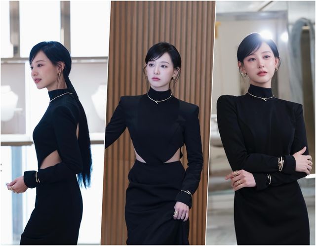 사진 속 김지원은 머리를 단정히 하나로 묶은 스타일을 연출한 뒤 블랙 색상의 드레스를 입고 우아한 매력을 발산하는 모습이다. 특히 과감한 옆트임에 드러난 가녀린 허리 라인과 뒤태까지 과감히 노출하는 스타일로 눈길을 사로잡았다.