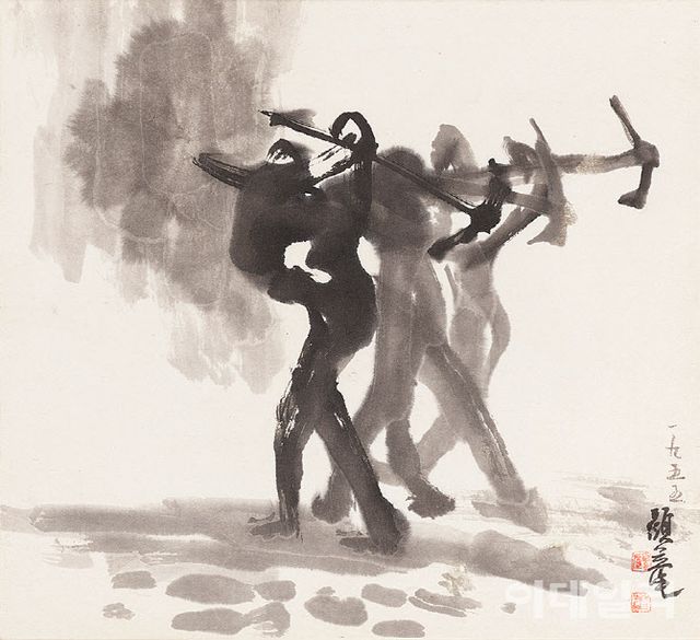 1904년 충남 홍성군에서 태어난 이응노는 1922년 서울로 올라와 해강 김규진(1868∼1933)에게 정통 문인화를 배웠다. 스승의 가르침에 따라 대나무를 그리며 먹의 농담을 조절하는 방법과 대상을 빌려 정신을 표현하는 방식을 익혔다. 1935년에는 일본으로 건너가 직접 눈으로 관찰한 세상을 사실적으로 그리는 방법을 새롭게 학습했다. 일본의 패망이 확실해지던 1945년에 귀국한 그는 마침내 이 둘을 결합하며 자신만의 스타일을 만들어냈다. ‘동’(動·1955)처럼 지금 이곳에서 열심히 살아가는 사람들을 그리며 그들의 기운이 화면 가득 느껴지게 한 작품이었다. 현대적 추상으로의 흐름을 따르면서도 현실을 놓치지 말아야 한다는 당시 화단의 딜레마를 이응노는 이렇게 풀었다.