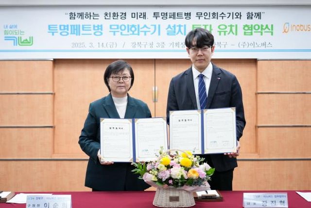 이러한 노력의 일환으로, 구는 지난 3월 14일 강북구청 기획상황실에서 투명페트병 무인회수기 '쓰샘' 운영사인 ㈜이노버스(대표 장진혁)와 협약을 체결하고, 지역 내 공동주택을 대상으로 무인회수기 설치 지원 사업을 본격 추진하기로 했다.