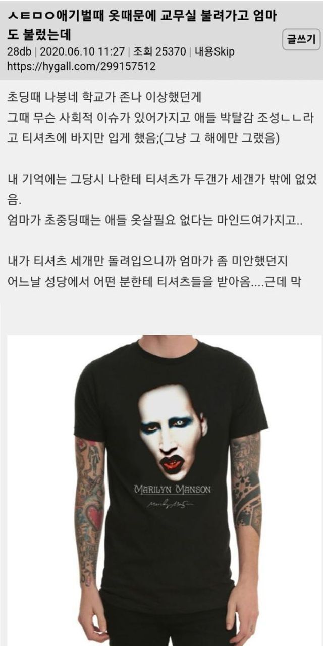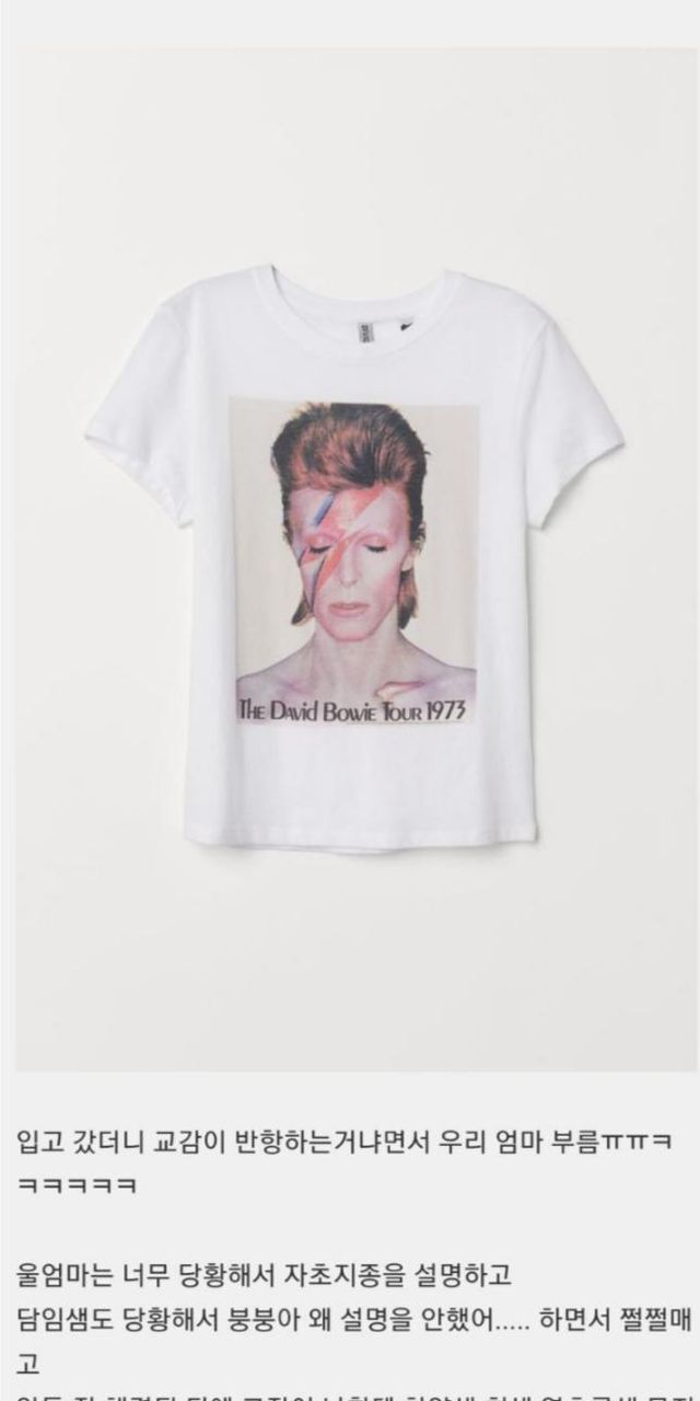 초딩때 티셔츠 땜에 교무실 가고 엄마도 불려 왔어