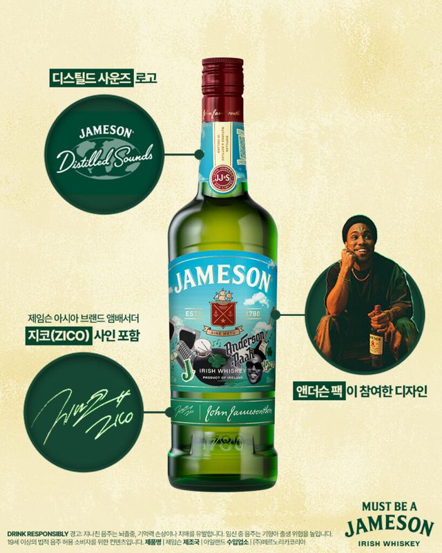 페르노리카 코리아의 아이리시 위스키 브랜드 제임슨이 음악과의 유기적인 조화를 선보입니다. 제임슨은 글로벌 캠페인 ‘디스틸드 사운즈(Distilled Sounds)’를 통해 그래미 어워드 9회 수상에 빛나는 글로벌 아티스트 앤더슨 팩(Anderson .Paak)과의 협업을 공개했는데요. 특히 아시아 브랜드 앰버서더이자 아티스트 겸 프로듀서로 활약 중인 지코의 사인이 새겨진 리미티드 에디션도 함께 출시되어, 국내외 음악 및 위스키 애호가들의 기대를 한껏 끌어올렸습니다.