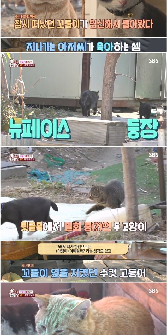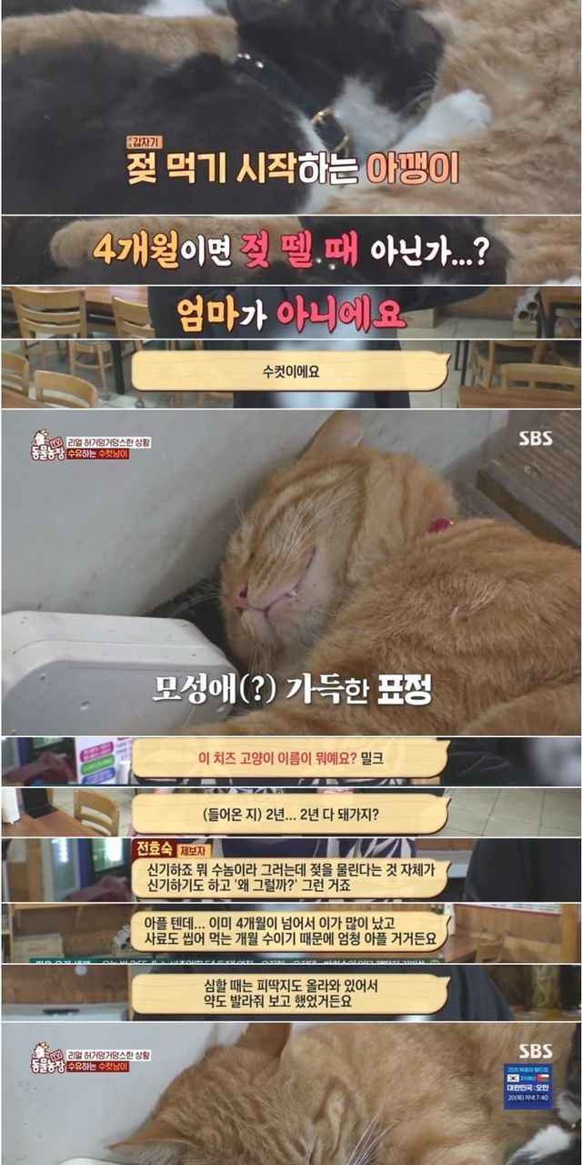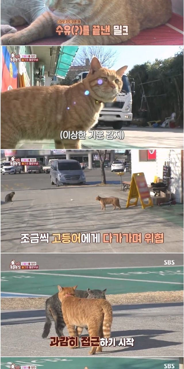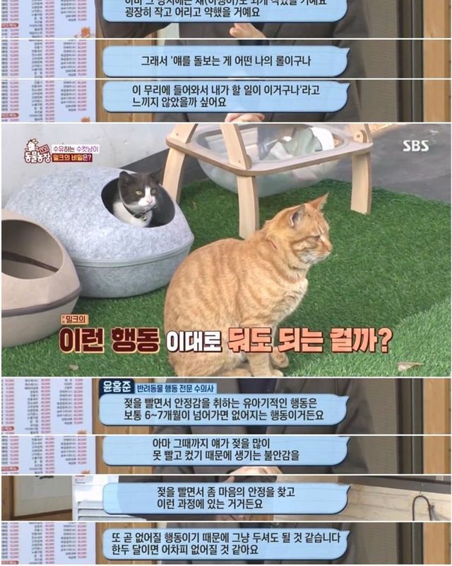 자기 자식도 아닌데 새끼 고양이 젖 먹이는 수컷 고양이