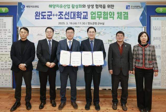 | ▲ 완도군-조선대학교, 해양치유 프로그램 개발 업무 협약 |