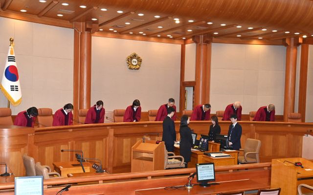다만 아직 윤 대통령 탄핵 사건 선고일은 정해지지 않았다. 24일 한 총리 탄핵심판, 26일 이재명 대표의 공직선거법 항소심 선고 등 일정이 예고돼 있다는 점을 감안하면 27~28일께 헌재가 윤 대통령 탄핵심판을 할 것이라는 전망이 여권 일각에서 나오고 있다.
