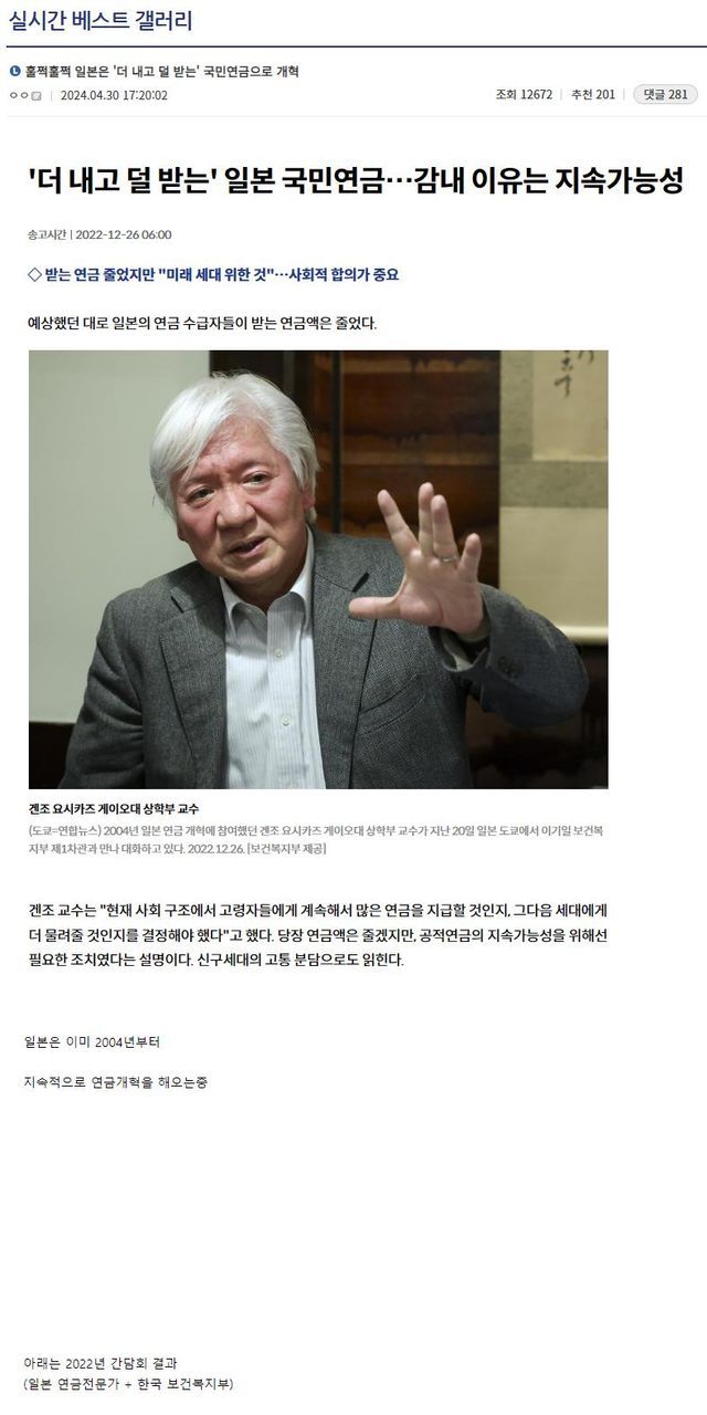 이미 20년 전에 연금개혁으로 중장년층이 더 내고 수령 늦추는 식으로 개정함