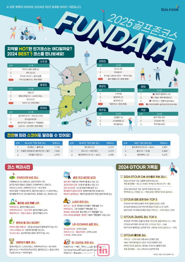 골프 토털 플랫폼 기업 골프존은 골프코스 선택에 도움을 주는 ‘2025 골프존코스 펀데이터(FUN DATA)’를 공개했다.