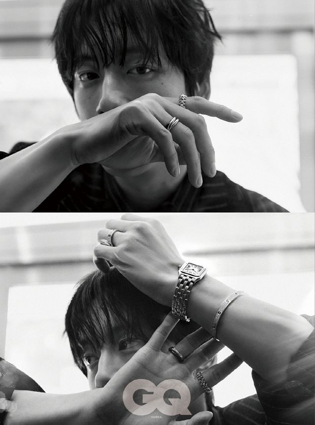 평소 "한번 인연을 맺으면 그 인연은 끊어질 수 없다"라는 주관을 밝혀왔던 사카구치 켄타로는 한번 잠그면 스스로 풀 수 없는 까르띠에의 LOVE 브레이슬릿을 착용하며 화보의 서사를 더욱 깊이 있게 완성했다.