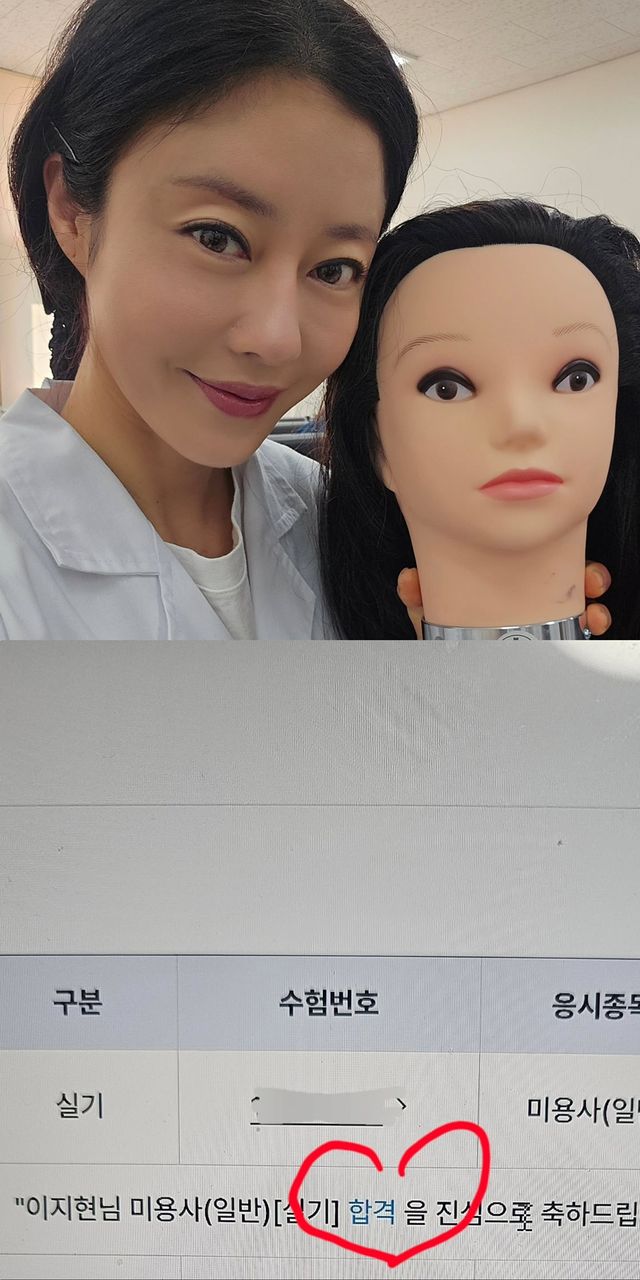 지난 20일 이지현은 자신의 인스타그램에 "칠전팔기 말이 씨가 될 줄 알았을까요?"라며 "1년 하고도 3개월 걸렸어요. 근데 13년 걸린 것 같은 느낌? 미용...많이 어렵네요. 아주 많이요. 물론 제가 못 한 것도 있지만요"라며 합격 소식을 알렸다.