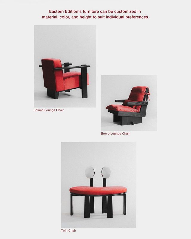 전통 드라마에서 한 번쯤 본 적 있을 법한 바닥 침구 보료. 이를 등받이로 재탄생시킨 것이 보료 라운지 체어인데요. 반턱짜임 전통 목공 기법으로 완성한 담백한 구조는 제니의 부드러운 감성을 그대로 담아냈어요.