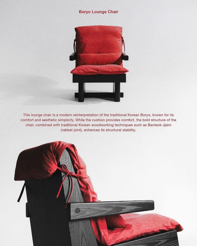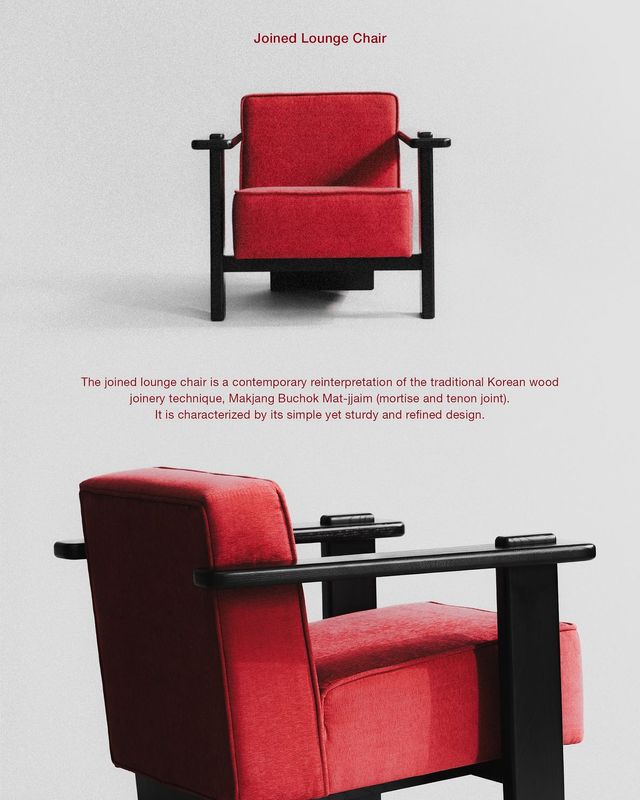 조인드 라운지 체어는 한국 전통 목공 기법인 막장부촉 맞짜임을 현대적으로 재해석한 가구입니다. 단순하면서도 견고하고 세련된 디자인이 특징으로, 무대 위에서 제니의 절제된 우아함과 조화를 이루죠.