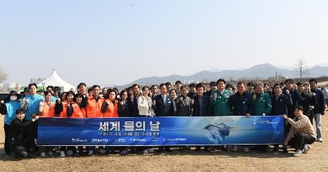 유희태 완주군수, 유의식 군의회 의장을 비롯한 참석자들은 ‘기후위기 시대, 미래를 위한 수자원 확보’ 슬로건 아래 환경정화 활동을 펼쳤다.