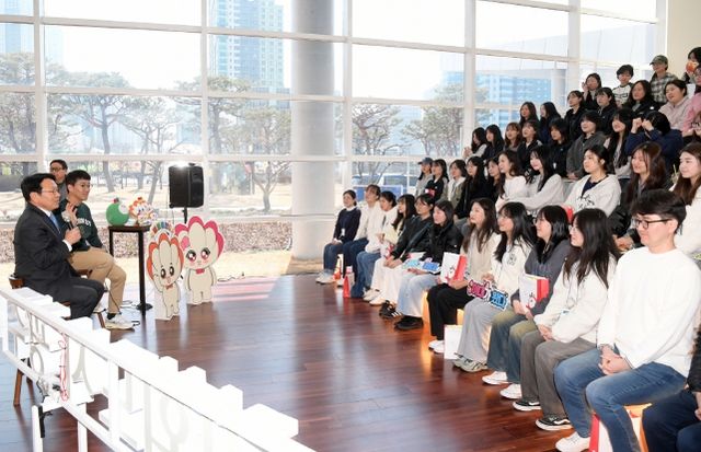 강 시장은 5·18민주화운동과 노벨문학상을 수상한 한강 작가 등 민주도시 광주를 소개하면서 “여러분의 부모님들이 80년 5·18 이후 광주를 찾아주고 민주주의에 헌신한 덕분에 광주는 민주주의 도시로 꽃피웠다. 5·18을 배우기 위해 광주를 찾아줘서 고맙다”고 감사 인사를 전했다.
