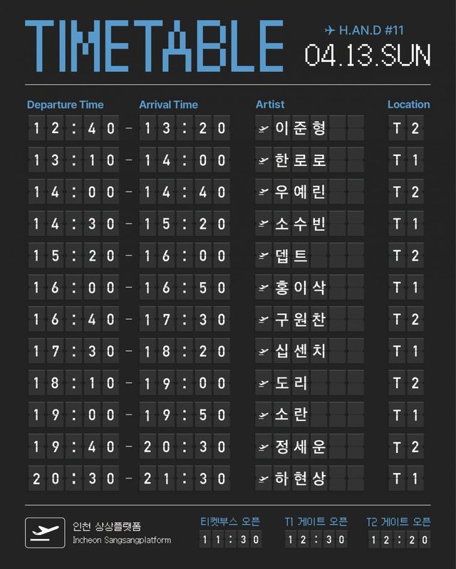 같은 날 ‘Terminal 2’에서는 ‘정세운’이 헤드라이너로 나서며, 다재다능한 작사·작곡 능력과 탄탄한 실력을 바탕으로 이번 핸드에서 첫 헤드라이너 무대를 선보일 것을 예고해 많은 팬의 마음을 설레게 하고 있다. 또한 ‘이준형’의 무대를 시작으로 ‘우예린’, ’dept(뎁트)’, ’dori(도리)’, ’구원찬’이 무대를 꾸미며 봄날의 절정을 화려하게 장식할 예정이다.