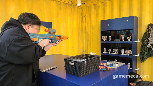 ▲ 장난감 총으로 과녁을 넘기면 성공 (사진: 게임메카 촬영)