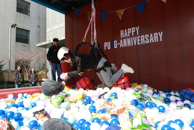 야외 공간에는 배틀그라운드의 세계관을 실제로 체험할 수 있는 훈련소 형태의 미니게임 4종이 마련됐다. 각 게임은 도전만 해도 특별 제작된 키링과 스탬프를 받을 수 있었다.