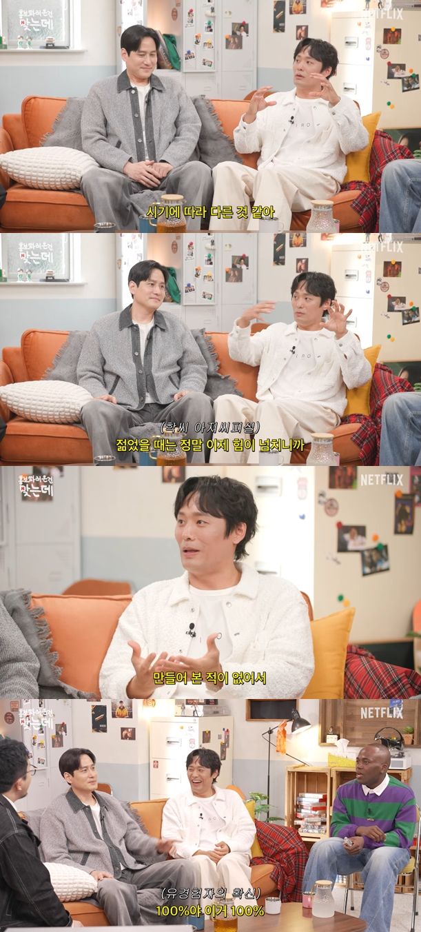 그러자 '사랑에 빠진게 죄는 아니잖아'라는 유행어를 만들어낸 박해준은 "100%다. 나가면 다 '학, 씨' 하고 있는 것 아니냐"라고 격려했다.