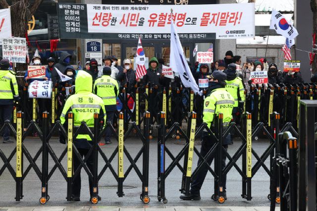 21일 서울 종로경찰서는 종로구 헌법재판소 인근에서 시위를 제지하는 경찰관을 폭행한 남녀 2명을 공무집행방해 혐의로 현행범 체포했다고 밝혔다.