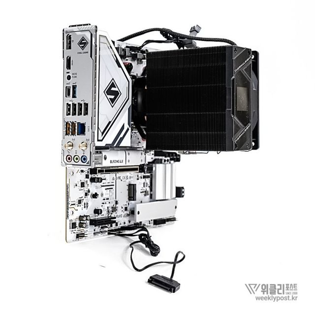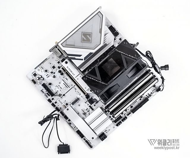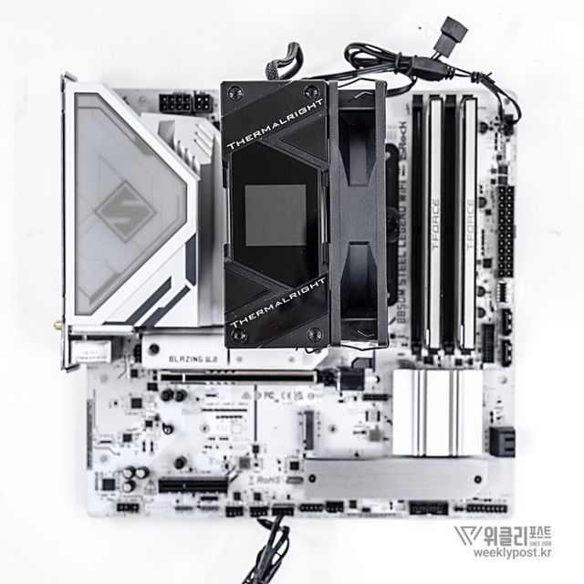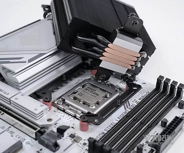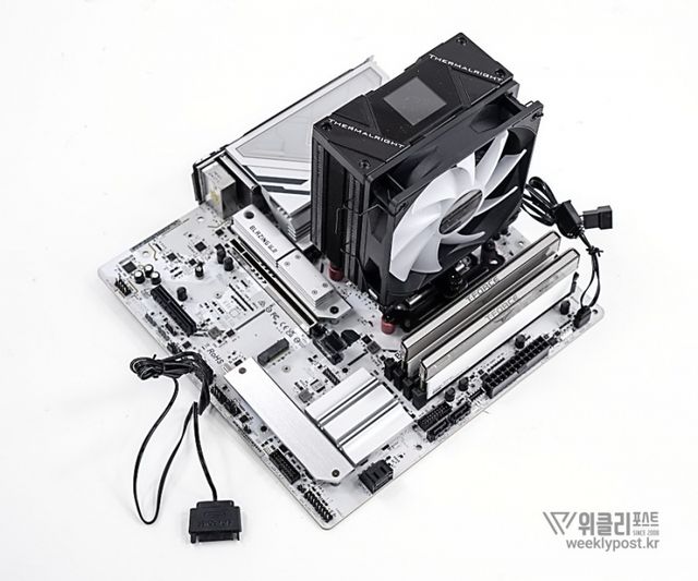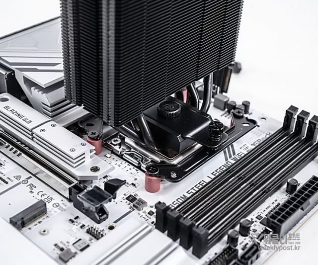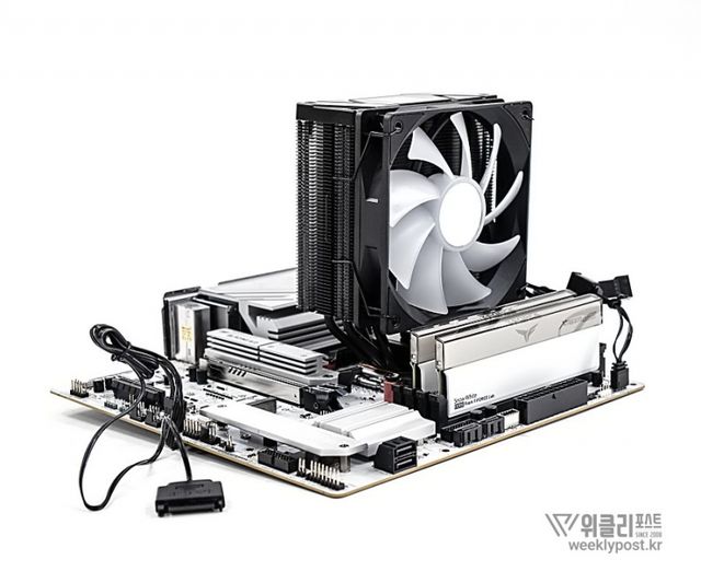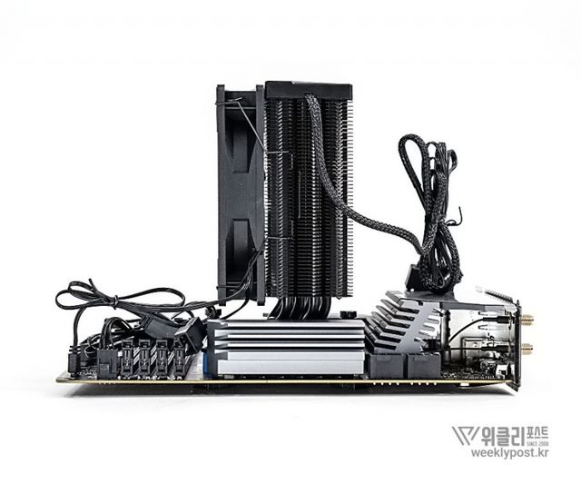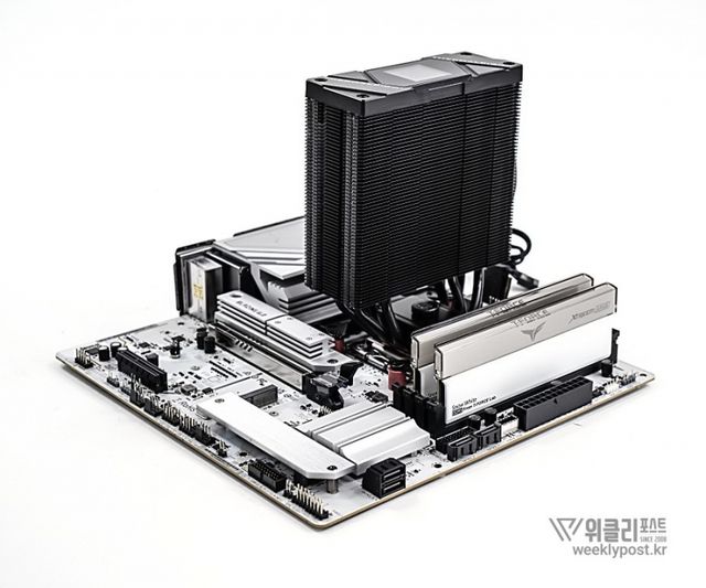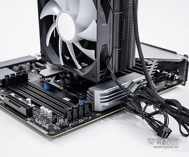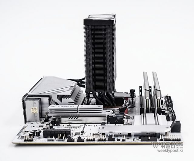 왜냐? 너무 평범하게 생겨서. 못생겼다고는 할 수 없지만, 그렇다고는 해서 또 매력 만점의 멋진 디자인을 갖춘 것은 아닌 것이다. 화려함 담당은 바로 옆에 RGB로 빛나는 메모리가 담당하는 경우가 많다. 사실은 이것도 싱글타워 공랭쿨러의 장점이다. 고성능 메모리를 사용해도 간섭이 없기 때문이다.