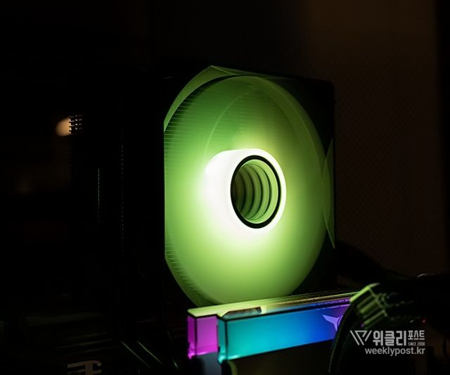 여기까지만 해도 이미 충분히 훌륭하다. 고정 RGB인 제품을 심심찮게 볼 수 있기 때문이다. 거기에 이 ARGB는 인피니티 미러다. 중앙 팬 블레이드 내부가 끝없이 화려하다. 메인보드 호환 소프트웨어를 통해서도 색상을 변경할 수 있다.