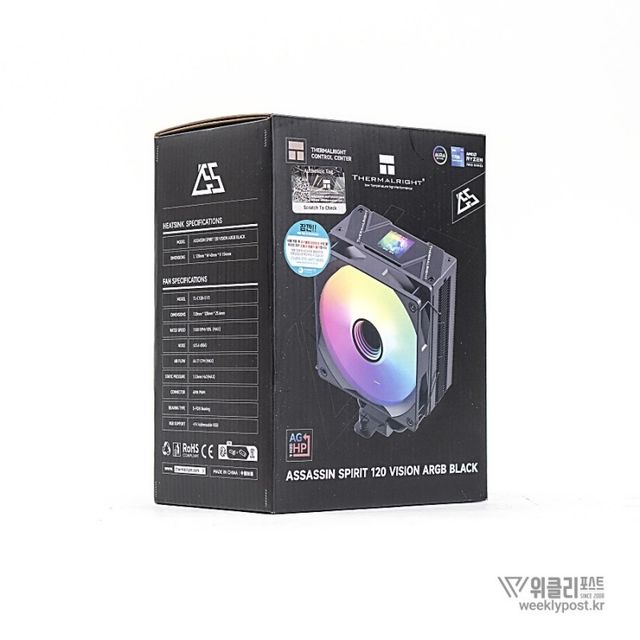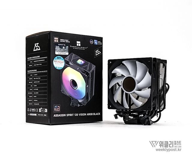 Thermalright Assassin Spirit 120 Vision BLACK ARGB(서멀라이트 어쌔신 스피릿 120 비전 블랙 ARGB)는 싱글타워 공랭 쿨러다. 그런데 그냥 흔히 볼 수 있는 싱글타워 공랭 쿨러가 아니다. 1670만 ARGB 조명 설정이 가능래 다양한 커스터마이징이 가능한 것이다.